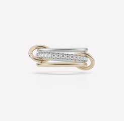 티그리스는 그레이 또는 블랙 다이아몬드가 유파베 형식으로 세팅된 중앙 밴드와 동일한 게이지의 두 개의 .925 스털링 실버 또는 18k 옐로우 골드 밴드로 정교하게 제작되었습니다. 모든 밴드는 회전하는 18k ...